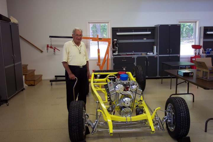Dad with engine Dad guided the engine perfectly into place